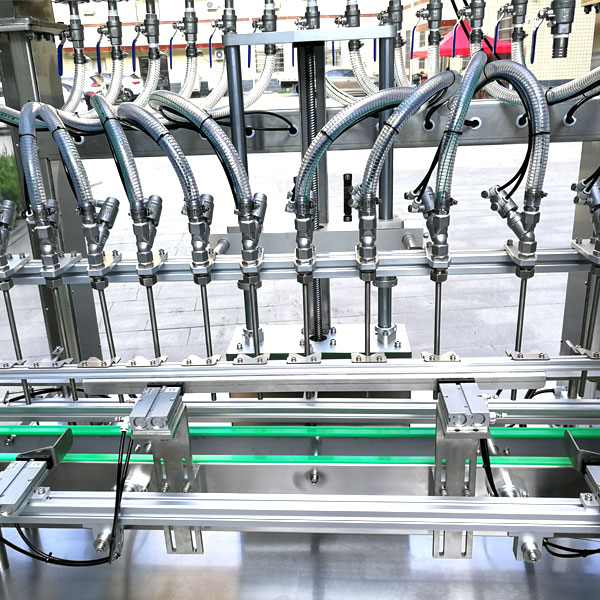 9、獨特的灌裝頭設計及真空回吸系統,確保現場及包裝成品免受殘液污染,先快后慢雙速灌裝量可隨意設定,灌裝速度可調,解決了泵壓快速灌裝時的溢瓶現象。