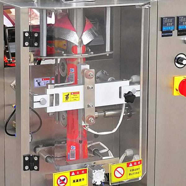 3、橫、縱封溫度獨立控制,精確度可達±1℃度,小袋顆粒包裝機能良好的適用各種復合膜、PE膜等包裝材料,并可自動調整偏差量,極大降低勞動強度;